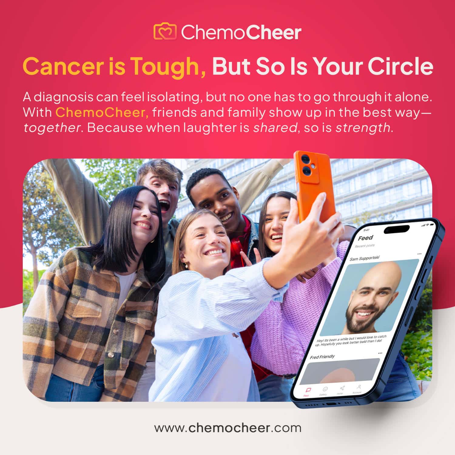 The client is an innovative startup in the mobile app development industry, headquartered internationally. Their mission is to revolutionize cancer support by providing a digital platform where patients can connect, share experiences, and find solace through shared humor and empathy. Unlike traditional support groups that can sometimes feel formal or clinical, this web app aims to be a lighthearted, yet deeply meaningful space.