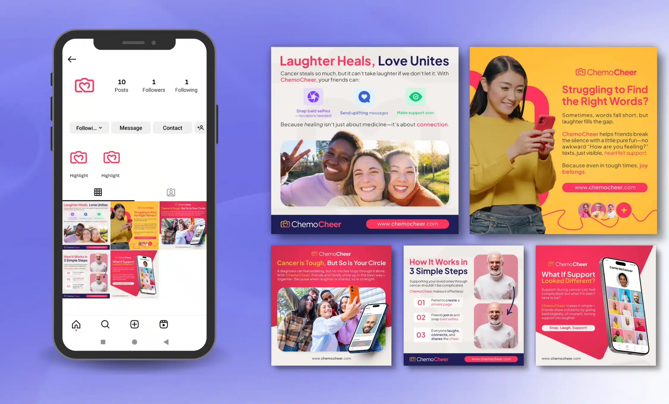 • SEO-Enhanced Copywriting: Every piece of copy was written with both the human user and the AI crawler in mind. We naturally wove in our focus keywords and their semantic variations into the captions and hashtags. The language was kept simple, direct, and conversational to optimize for voice search queries like, “Where can I find support for my cancer journey?” or “How do I connect with other cancer patients?”